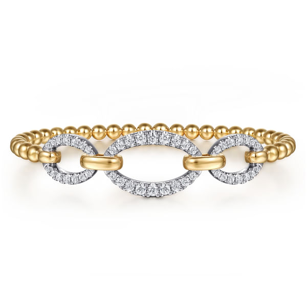 14K White Yellow Gold Bujukan Diamond Link Split Bangle Bracelet