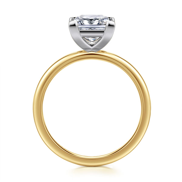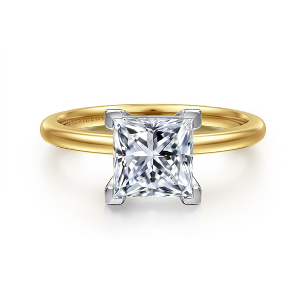 Evelina - 14K White-Yellow Gold Princess Cut Solitaire Diamond Engagement Ring
