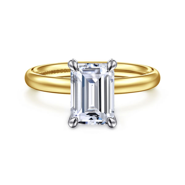Unite - 14K White-Yellow Gold Emerald Cut Solitaire Diamond Engagement Ring