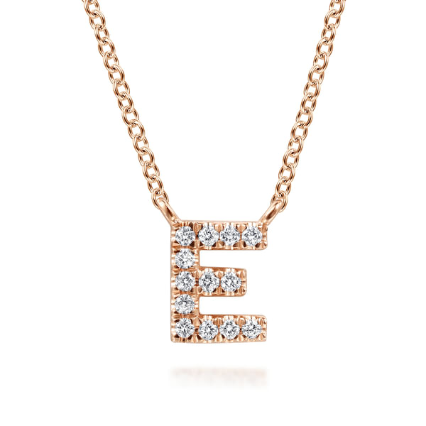 14K Pink Gold Diamond E Initial Pendant Necklace