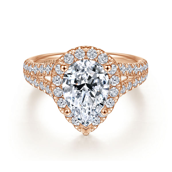 James - 14K Rose Gold Pear Shape Halo Diamond Engagement Ring
