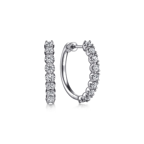 Immerse yourself in a world of luxury and glamour with these stunning 14K white gold hoop earrings. Like a timeless work of art, these 20mm hoops feature a dazzling display of 0.95cts of expertly set diamonds that sparkle with your every movement. And with our patented screwback closure, you can wear them with confidence and ease, knowing they will stay securely in place.Item CodeEG14775W45JJDivisionGabrielCollectionLussoStyleClassic HoopMetal Type14k White GoldTotal Diamond Weight1.05 ctAverage Diamond ClaritySI or higherAverage Diamond ColorNear ColorlessGemstoneNatural Diamond -