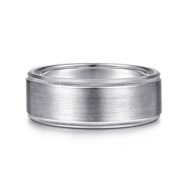 Benjamin - 14K White Gold 8mm - Beveled Edge Men's Wedding Band in Satin Finish