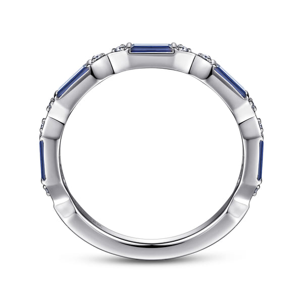 Porta - 14K White Gold Channel Set Baguette Sapphire and Pave Round Diamond Anniversary Band