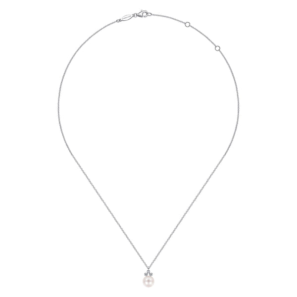 14K White Gold Diamond and Pearl Pendant Necklace