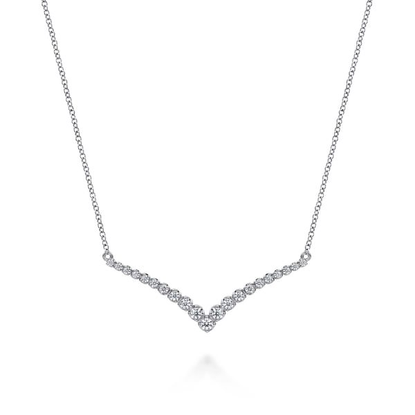 14K White Gold Diamond Chevron Bar Necklace