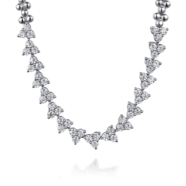 Experience pure sophistication and radiance through handcrafted arcs of gold spheres, radiant mini-cluster diamonds and chains of perfect gold circles.