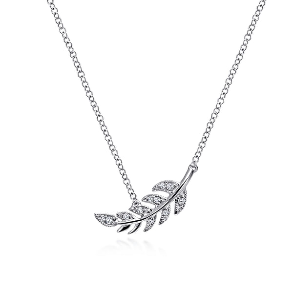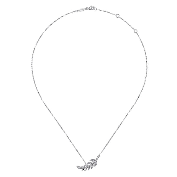 Floral - 14K White Gold Diamond Leaf Pendant Necklace