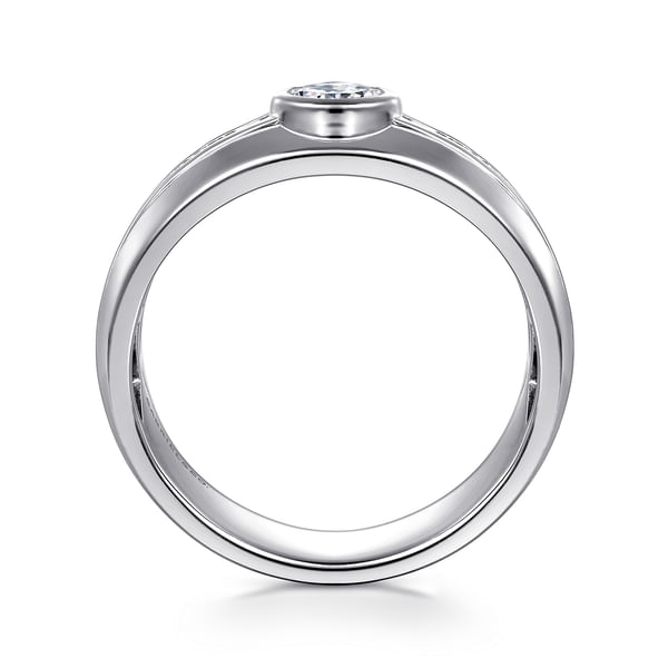 14K White Gold Diamond Mens Engagement Ring in High Polished Finish