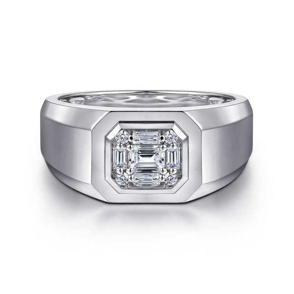 14K White Gold Diamond Mens Engagement Ring in High Polish Finish