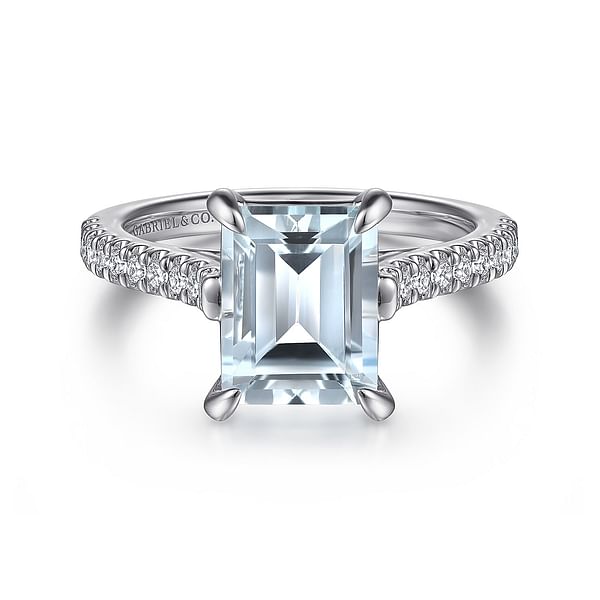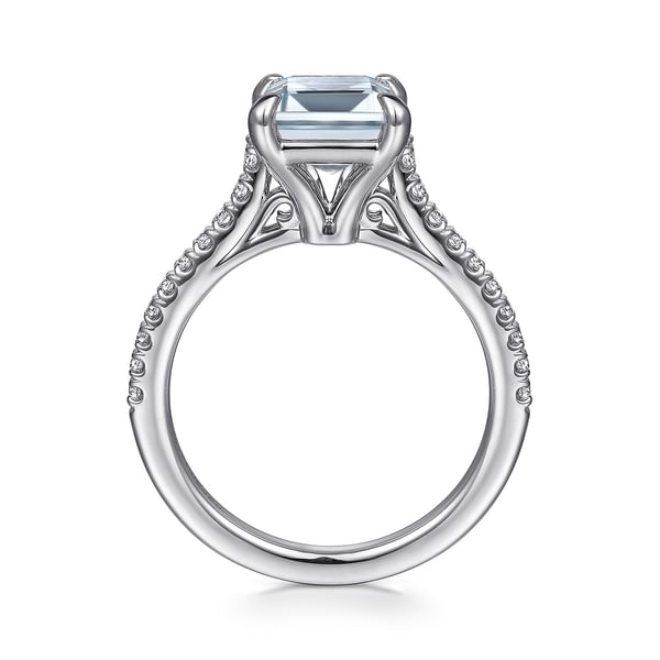 Shayanne - 14K White Gold Emerald Cut Aquamarine and Diamond Engagement Ring