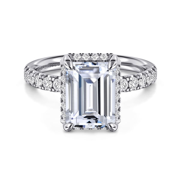 Talisa - 14K White Gold Emerald Cut Hidden Halo Diamond Engagement Ring