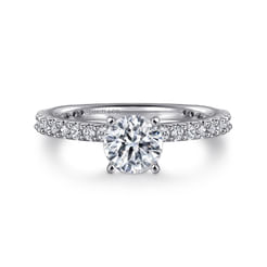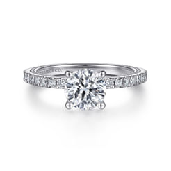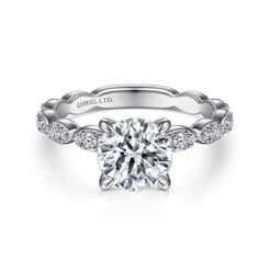 Lena - 14K White Gold Floral Round Diamond Engagement Ring