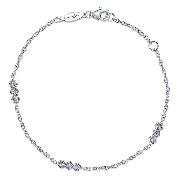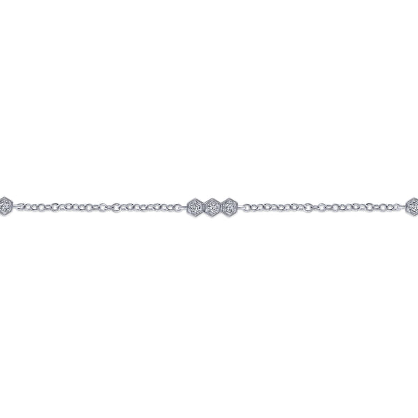 14k White Gold Hexagonal Diamond Stations Tennis Bracelet