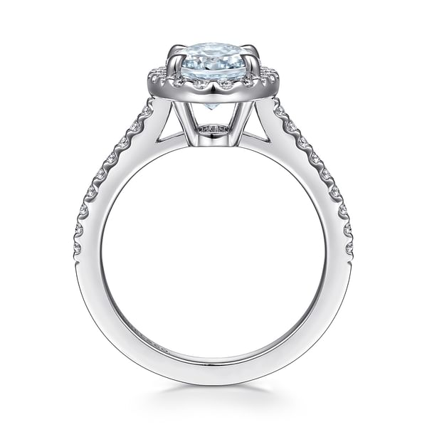 Loreina - 14K White Gold Oval Halo Aquamarine and Diamond Engagement Ring
