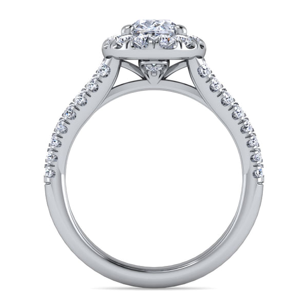 Topped by a lavish cushion shaped halo, this 0.77ct diamond engagement ring is an unparalleled showcase for your chosen 1ct oval center stone. The 14K white gold shank features two strands of delicate pavé diamonds that split as they ascend toward the halo. This effortlessly chic ring is as timeless as it gets.Item CodeER10252O4W44JJDivisionGabriel BridalCollectionContemporaryProduct NameJamesStyleHaloMetal Type14k White GoldCenter Stone ShapeOvalCenter Stone Carat Weight1 ctCenter Stone Size8x5.5 mmTotal Diamond Weight0.77 ctAverage Diamond ClaritySI or higherAverage Diamond ColorG-H ColorGemstoneNatural Diamond -