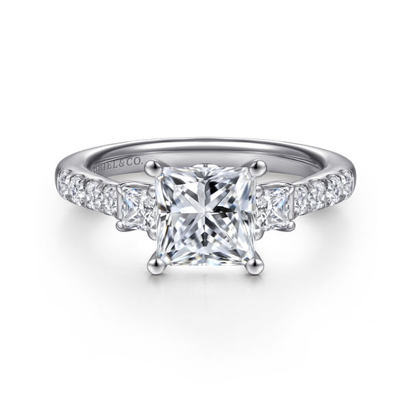 Alta - 14K White Gold Princess Cut Three Stone Diamond Engagement Ring