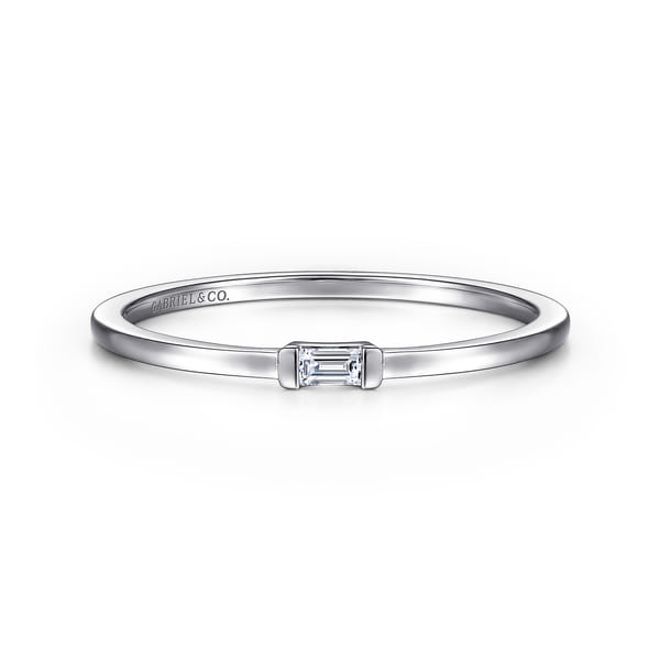 Promise Ring - 14K White Gold Ring with Diamond Baguette