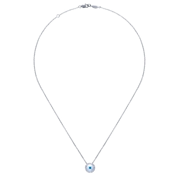 14K White Gold Round Diamond Evil Eye Pendant Necklace