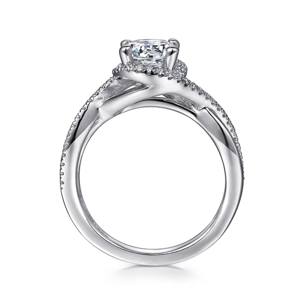In this 14K white gold engagement ring, a diamond encrusted criss cross band leads into bedazzling diamond halo center stone.Item CodeER7804W44JJDivisionGabriel BridalCollectionContemporaryProduct NameCourtneyStyleHaloMetal Type14k White GoldCenter Stone ShapeRoundCenter Stone Carat Weight1 ctCenter Stone Size6.5 mmTotal Diamond Weight0.23 ctAverage Diamond ClaritySI or higherAverage Diamond ColorG-H ColorGemstoneNatural Diamond -