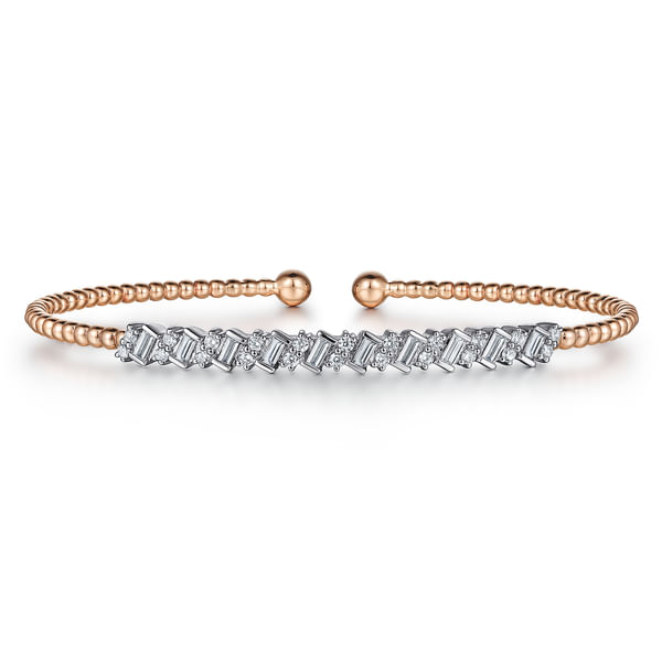 14K White-Rose Gold Bujukan Baguette Diamond Cuff Bracelet