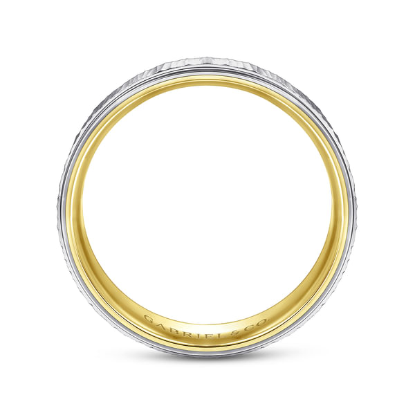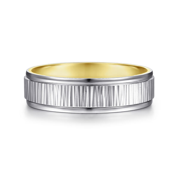 Jace - 14K White-Yellow Gold 6mm - Men's Wedding Band with Vertical Etching
