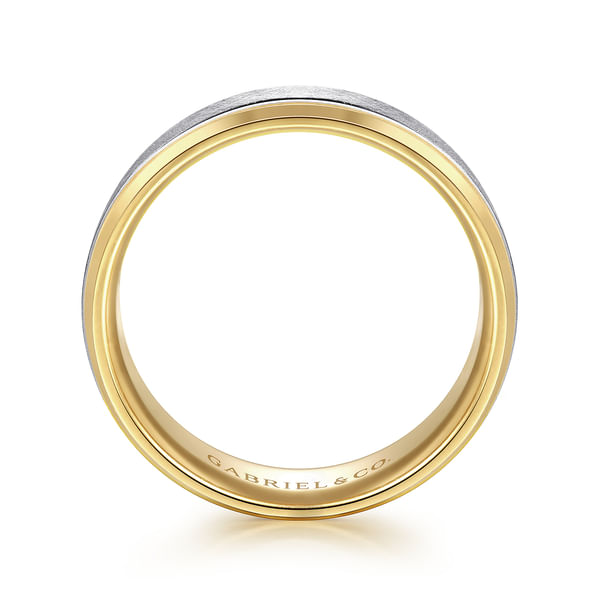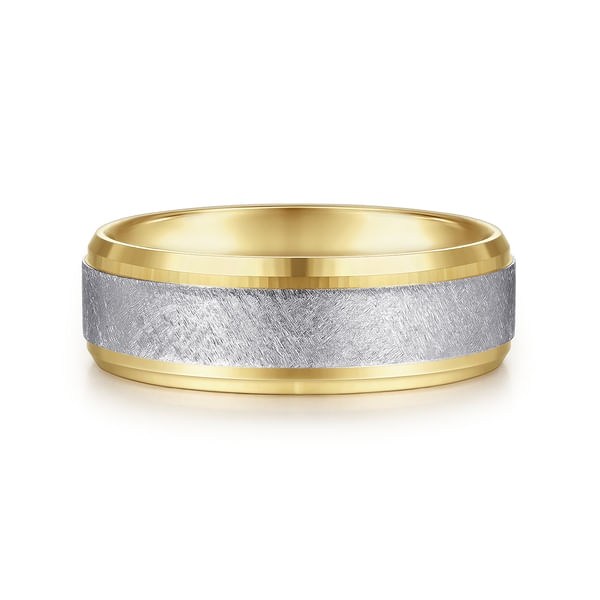 Cole - 14K White-Yellow Gold 7mm - Beveled Edge Men's Wedding Band in Diamond Scratch Finish