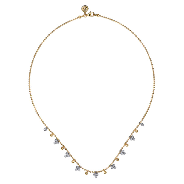 14K White Yellow Gold Bujukan Beads and Diamond Droplet Necklace