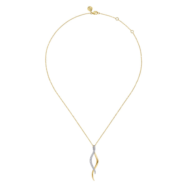 14K White Yellow Gold Diamond Twisted Spike Drop Necklace