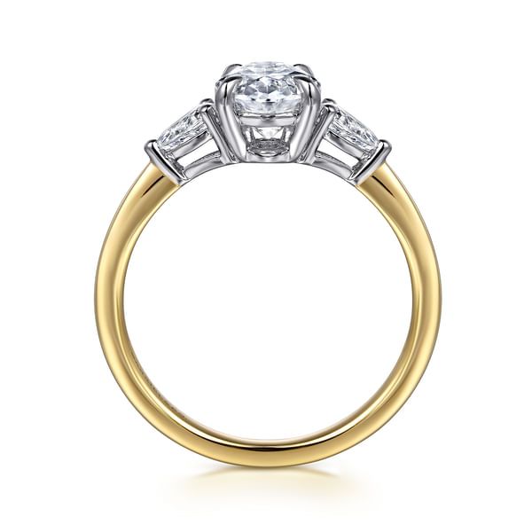 Sima - 14K White-Yellow Gold Oval Three Stone Diamond Engagement Ring