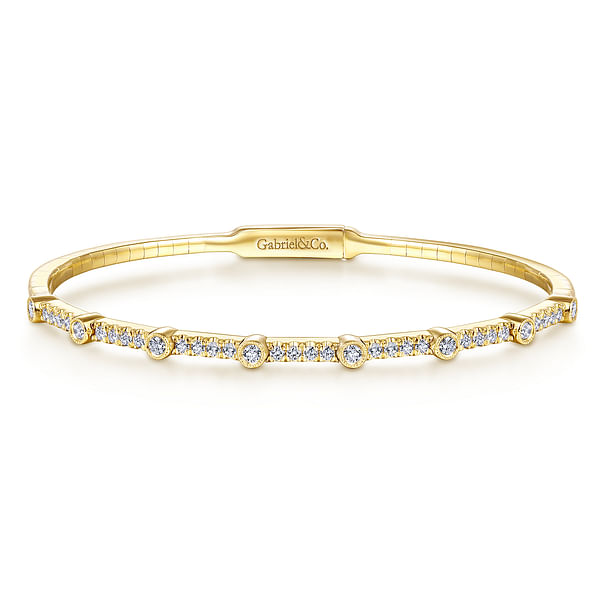 Demure - 14K Yellow Gold Bezel Station Diamond Bangle