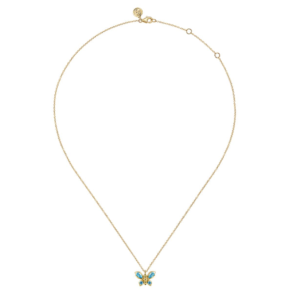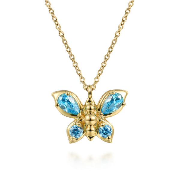 Butterfly - 14K Yellow Gold Blue Topaz Butterfly Pendant Necklace