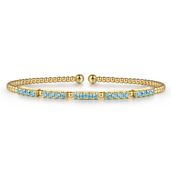 14K Yellow Gold Bujukan Beads and Blue Topaz Split Bangle Bracelet