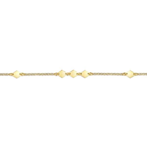 14K Yellow Gold Chain Ankle Bracelet with Diamond Shaped Stations