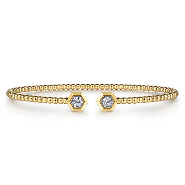 14K Yellow Gold Bujukan Beads and Diamond Split Bangle Bracelet
