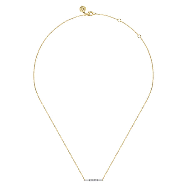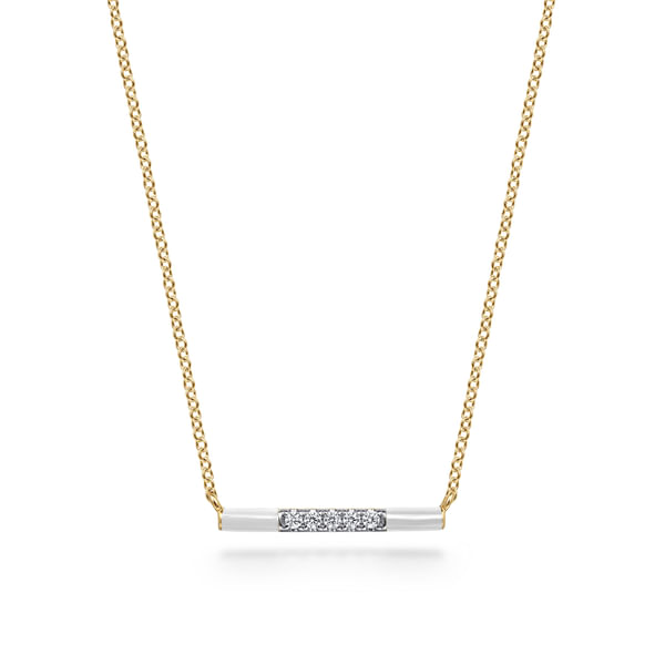 Enamel - 14K Yellow Gold Diamond Bar Necklace with White Enamel