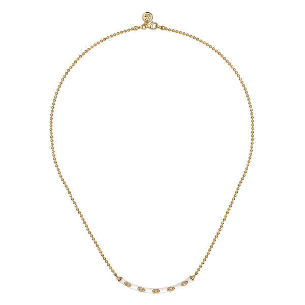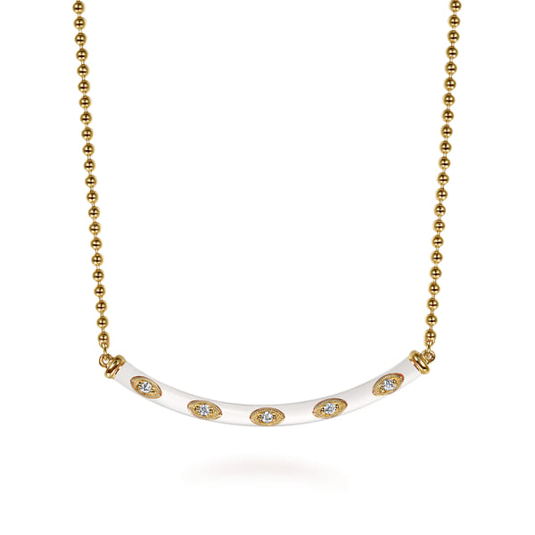 Enamel - 14K Yellow Gold Diamond Bar Necklace with White Enamel