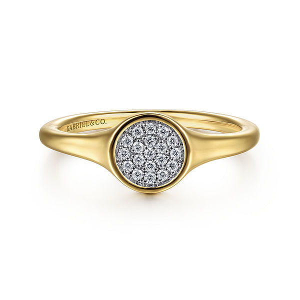 14K Yellow Gold Diamond Pave Mini Signet Ring