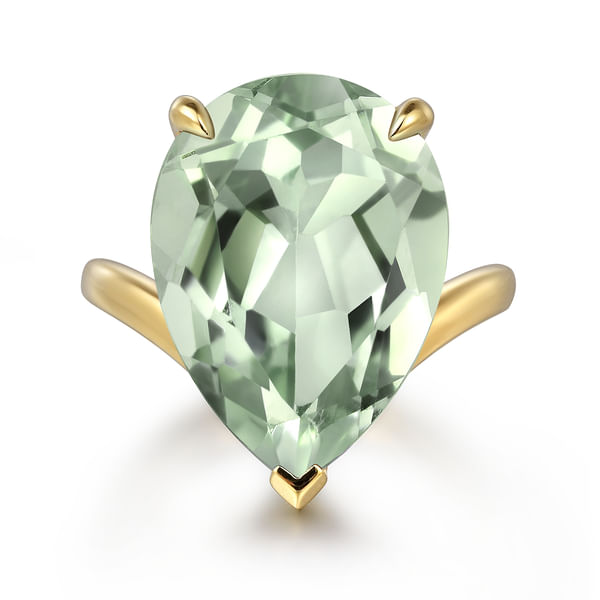 14K Yellow Gold Green Amethyst Pear Ladies Ring