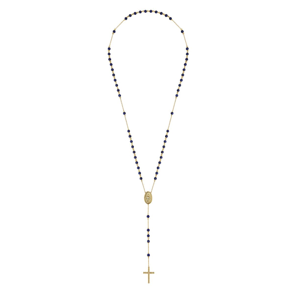 14K Yellow Gold Lapis Beads Rosary Necklace