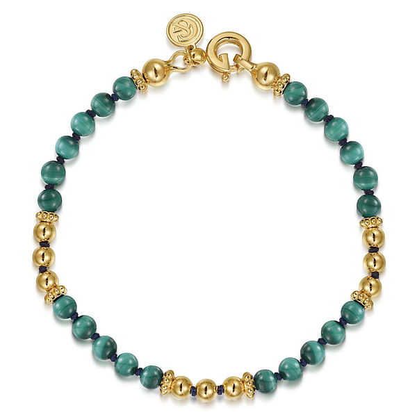14K Yellow Gold Malachite Beads Bracelet
