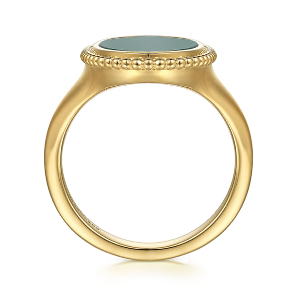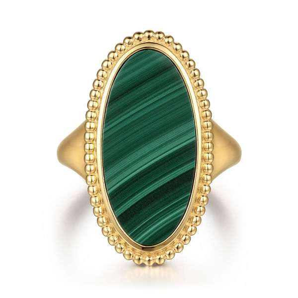 14K Yellow Gold Oval Malachite Inlay Signet Ring