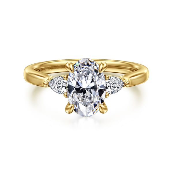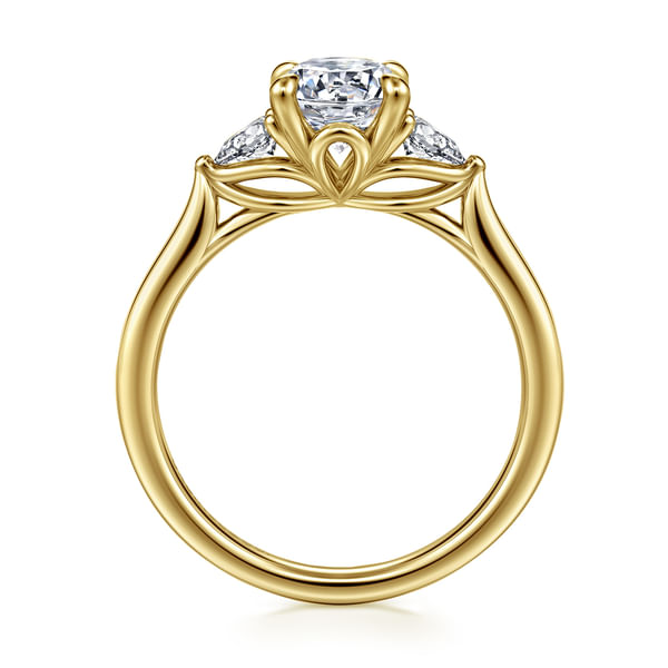 Reema - 14K Yellow Gold Oval Three Stone Lotus Diamond Engagement Ring