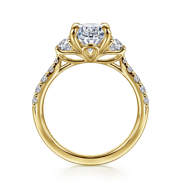 14K Yellow Gold Oval Three Stone Lotus Diamond Engagement Ring