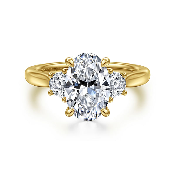 14K Yellow Gold Oval Three Stone Lotus Diamond Engagement Ring