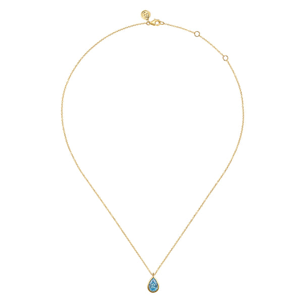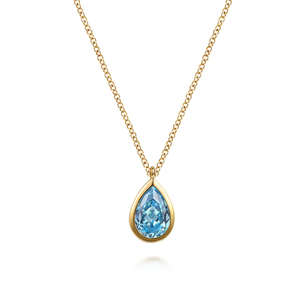 14K Yellow Gold Teardrop Blue Topaz Pendant Necklace