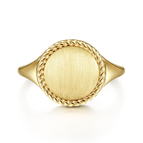 14K Yellow Gold Round Engravable Signet Ring with Twisted Rope Frame