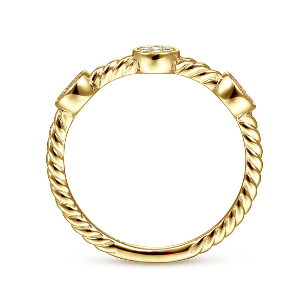 14K Yellow Gold Twisted Rope Cluster Diamond Station Stackable Ring