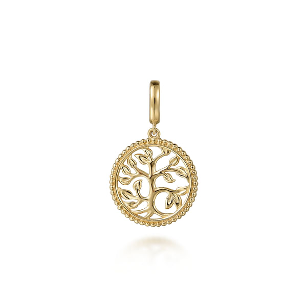 14K Yellow Plain Gold Bujukan Tree of Life Medallion Pendant With Detachable Bail