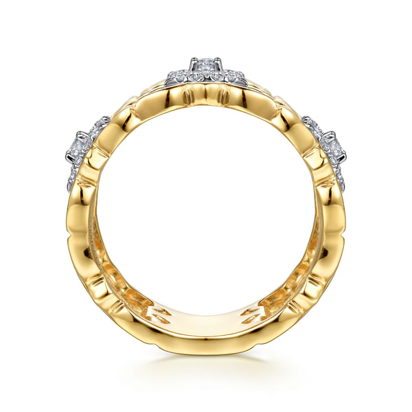 Byzantine Flower - 18K White Yellow Gold Diamond Floral Wide Band Ring